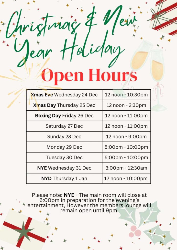 Just a quick post to let eveyone know the Club opening hours over Christmas and New Year. We look foward